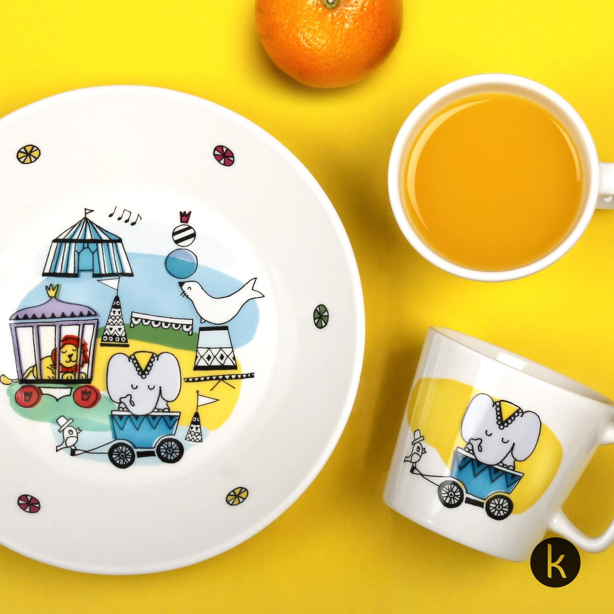 The Circus children's mug has a fun circus-themed illustration. The mug has a capacity of 2 dl. The product is made of high-quality vitro porcelain and is dishwasher, microwave, oven and freezer safe.