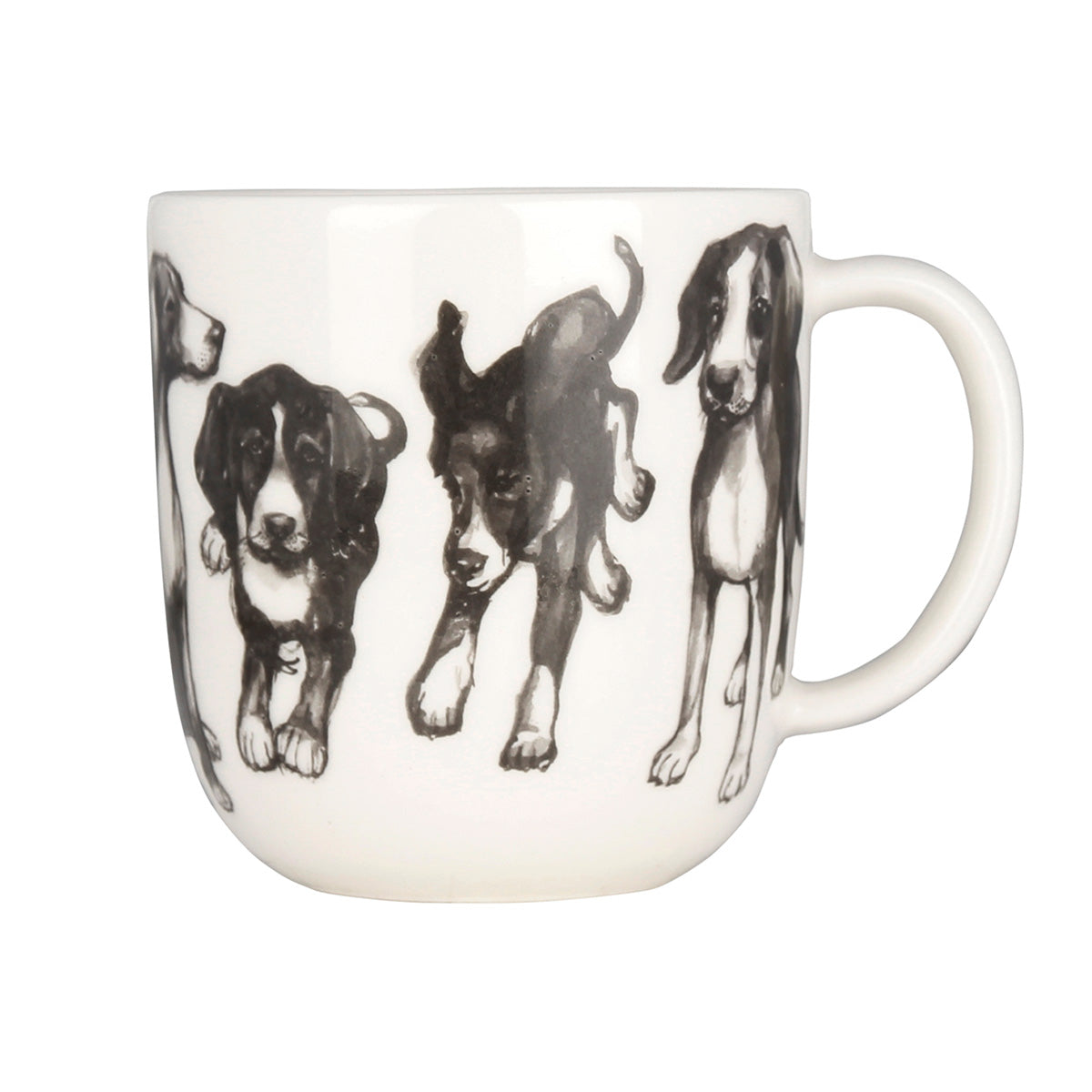 Tyylikkään mustavalkoinen Koiran Ystävät -sarjan muki, Ajokoira Mukit valmistetaan korkealaatuisesta vitroposliinista. Kuvitus Taru Tonder. Mukin vetoisuus on 3 dl.